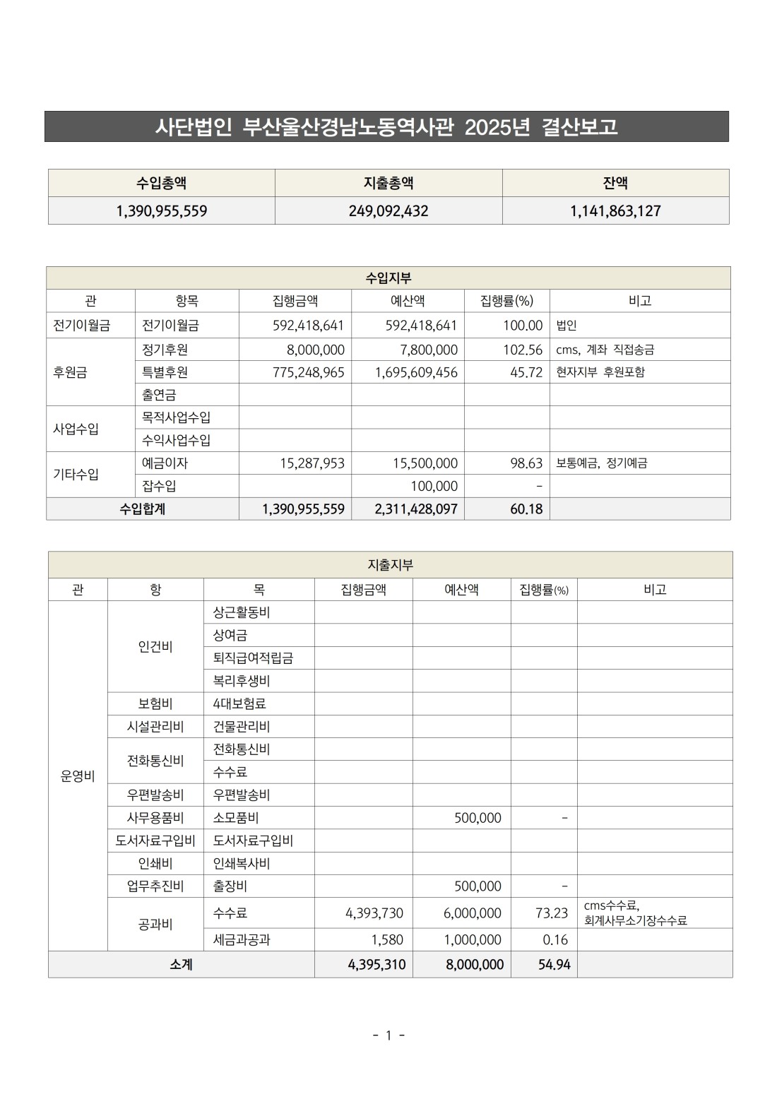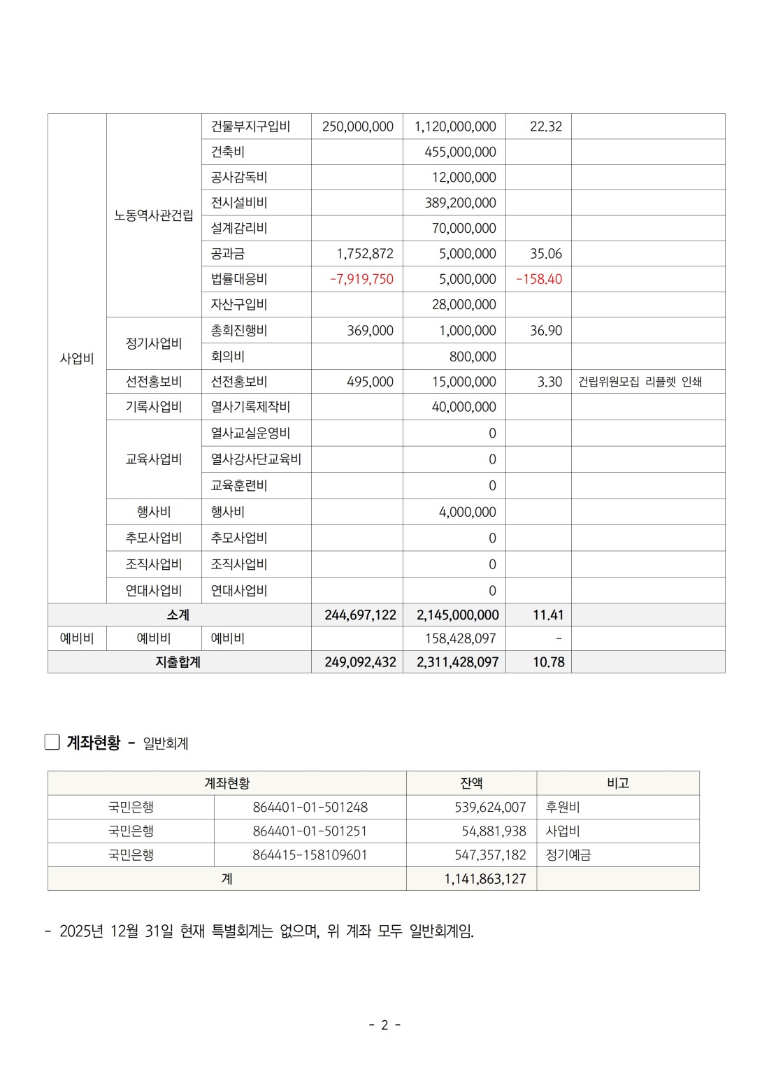 공지 사단법인 부산울산경남노동역사관 2025년 결산보고